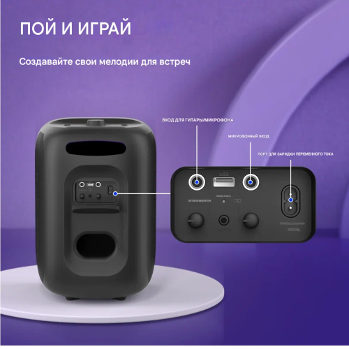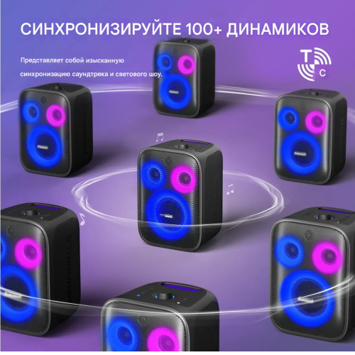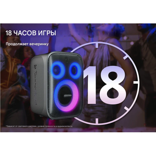 Стереосистема: технология TuneConn позволит создать целую стереосистему и сопрячь несколько колонок вместе До 18 часов на одном заряде: на уровне громкости ~50% с выключенной подсветкой