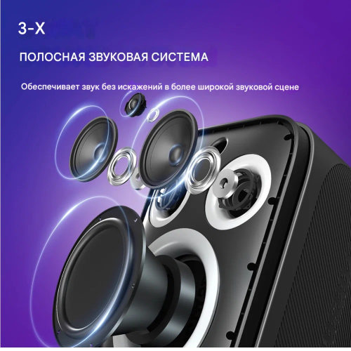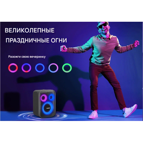 Светомузыка : 5 режимов. Яркая RGB-подсветка на динамиках переливается в такт музыке