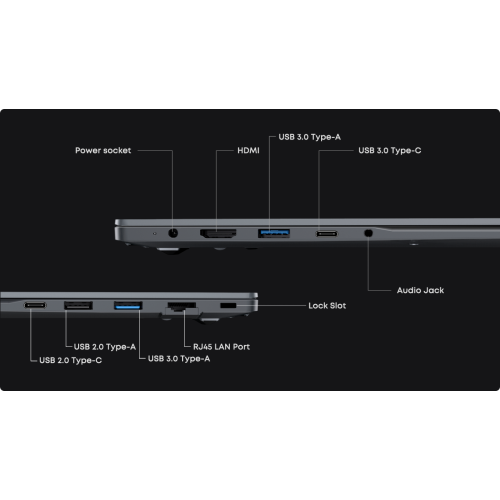 Производительность и быстродействие системы обеспечивается 4-ядерным процессором Intel N100 с частотой 0.8 ГГц и возможностью разгона до 3.4 ГГц. 16 ГБ оперативной памяти LPDDR5 и 512 ГБ SSD-накопитель обеспечивают быструю загрузку системы и приложений, а также достаточное пространство для хранения данных.