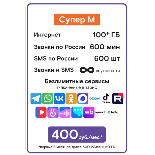 Мобильный оператор +7Телеком ТАРИФ «НА СВЯЗИ 2.0» 500 ₽ Тариф «На связи 2.0»..