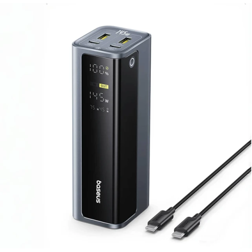 Новинка от Baseus, оригинальный внешний аккумулятор Baseus EnerGeek GP12, 145 Вт, 20800 мАч Благодаря сверхбыстрой зарядке мощностью 100 Вт через порт PD 3.0 он быстро заряжает такие устройства, как 14-дюймовый MacBook Pro. Обеспечивает мощность 145 Вт для двух устройств и зарядку через 4 порта. Интеллектуальный дисплей и компактный дизайн делают его идеальным для путешествий и повседневной жизни. Высокая емкость 20800 мАч, восемь элементов емкостью 2600 мАч обеспечивают несколько полных циклов зарядки смартфонов и надежную автономную работу планшетов или ноутбуков Зарядка для четырёх устройств: 2 порта USB-C и 2 порта USB-A позволяют заряжать до четырёх гаджетов одновременно