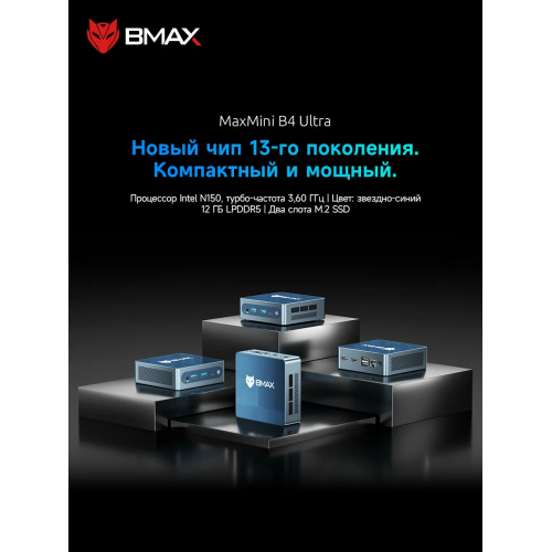 Мини-ПК BMAX B4 Ultra (Intel N150, RAM 12 ГБ, SSD 512 ГБ)
