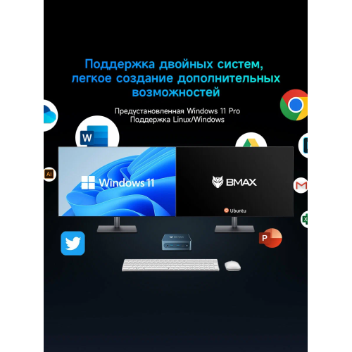 Мини-пк BMAX B4 Ultra сочетает в себе высокую производительность, мобильность и гибкость. Его компактные размеры позволяют системе легко и эффективно справляться с повседневными вычислительными задачами. Независимо от того, ищете ли вы простой офисный ПК, домашний центр повышения производительности или надежный мини-настольный компьютер, B4 Ultra - это отличное решение в элегантном корпусе.