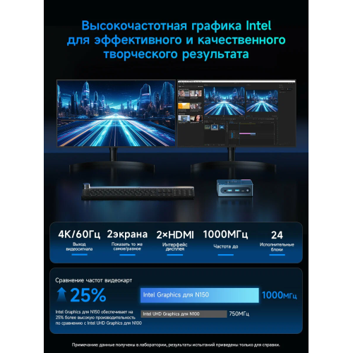 Процессор: Intel® 13-го поколения Twin Lake N150 с тактовой частотой до 3,6 ГГц.