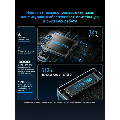 Благодаря LPDDR5 на 12 Гбайт и быстрому SSD-накопителю система быстро загружается и плавно справляется с многозадачностью. Расширяемая структура хранилища M.2 означает, что вы можете без проблем модернизировать емкость хранилища.