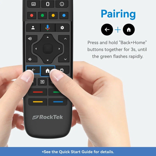 - Легкое и быстрое сопряжение Нажмите и удерживайте кнопки «Назад» и «Домой» одновременно в течение 3 секунд, пока зеленый индикатор не начнет быстро мигать.