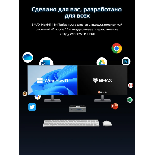 Мини-компьютер BMAX B4 Turbo Intel N150 16/512 ГБ
